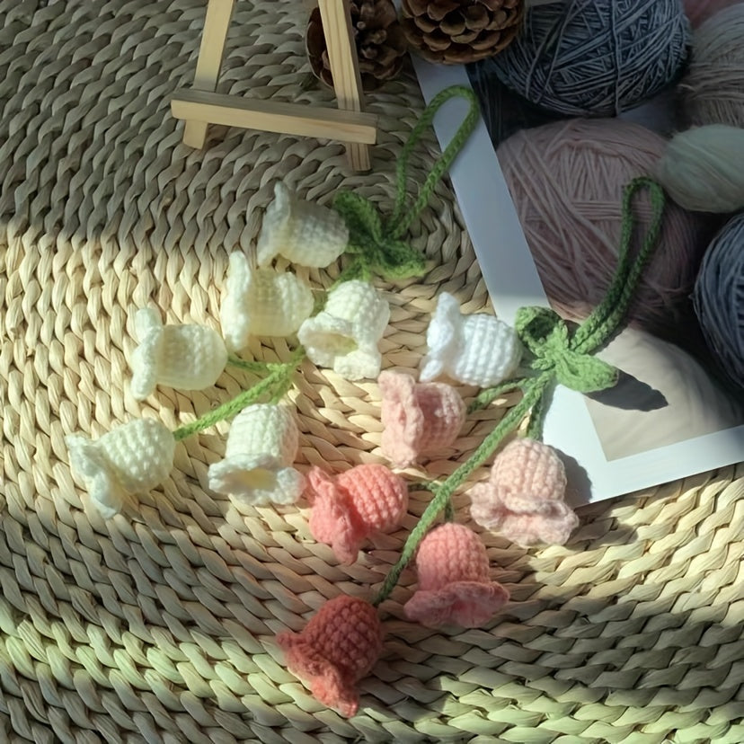 Hand-Knit Bellflower Car Rearview Mirror Hanging Ornament �Cute Crochet DIY Decor, Colorful Floral Design with Green Leaves and Yellow Centers, Ideal for Vehicle Interior & Home Decoration, Charming Gift Idea